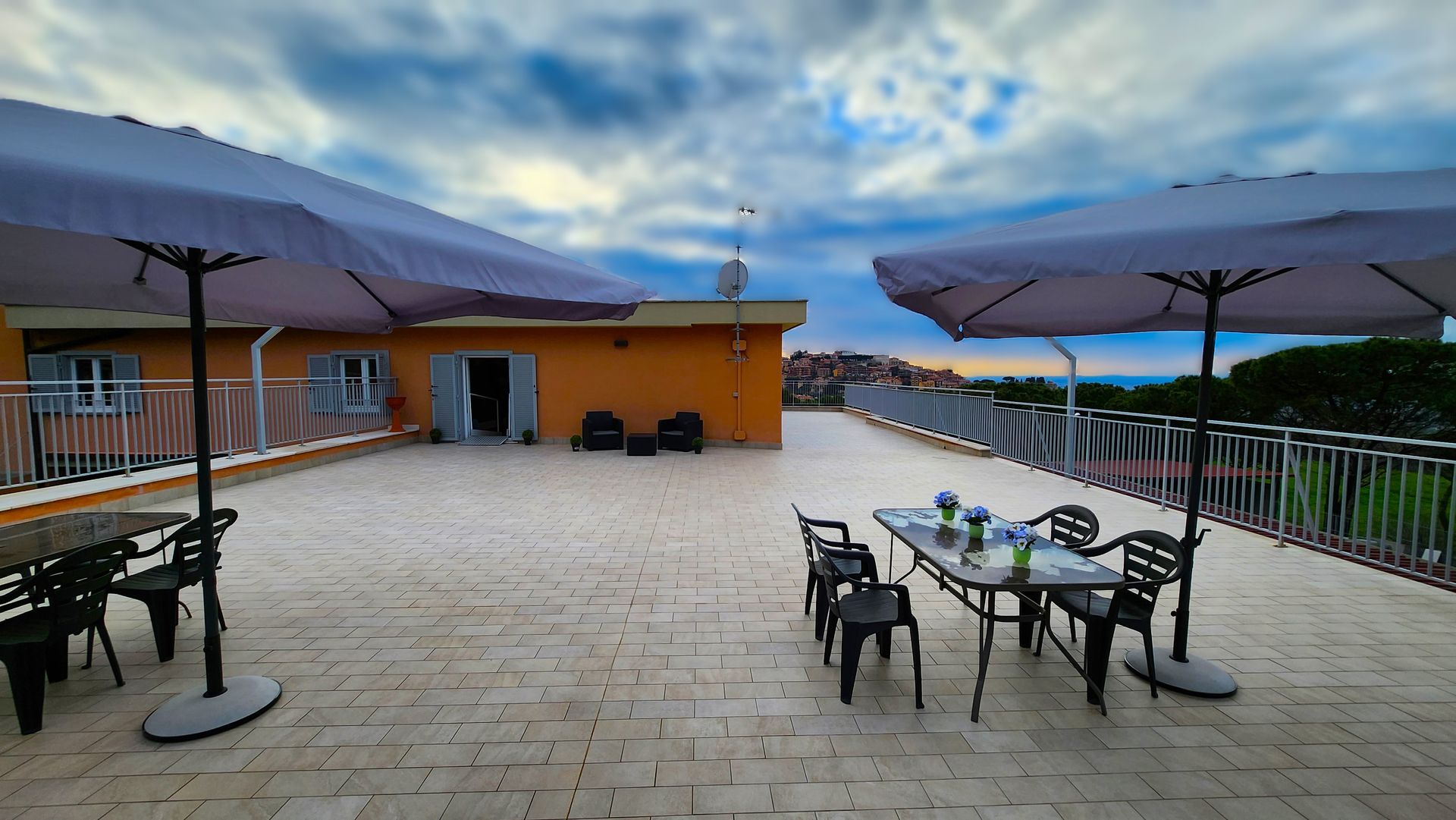 Le ampie terrazze offrono affacci unici e spazi per permetterti di socializzare, leggere un libro o partecipare alle attività di animazione mentre il patio esterno consente di passeggiare lungo i bordi della campagna Romana.